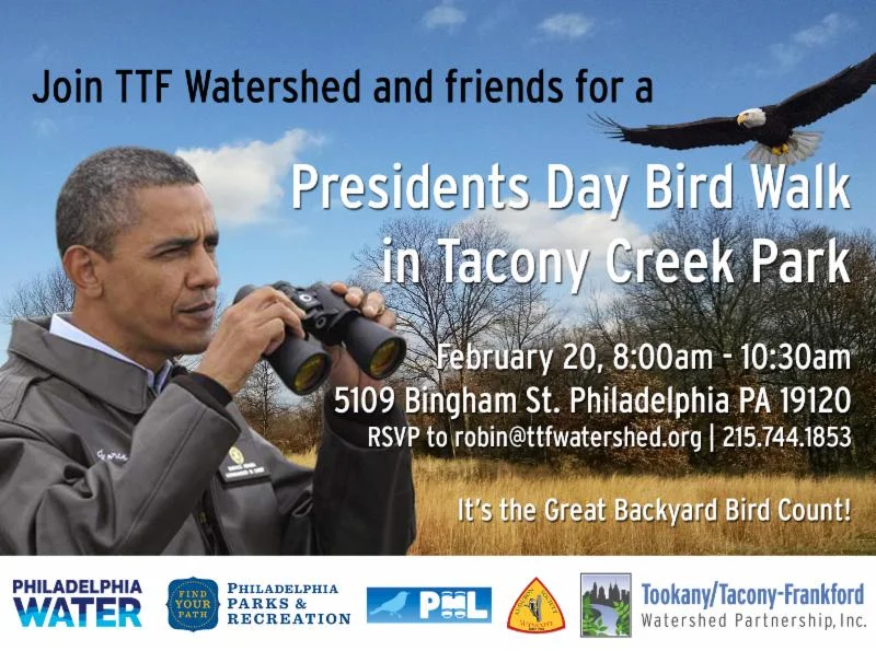 Join Tookkany/Tacony-Frankford Watershed Partnerhip, Inc. for the the annual Great Backyard Bird Count. Count birds in your backyard from February 17-20, log your findings on eBird, and share photos on Twitter and Facebook using #TTFbirds!